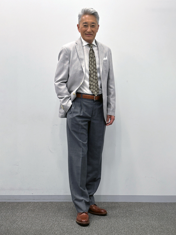 清涼感のある夏のジャケットスタイルです。